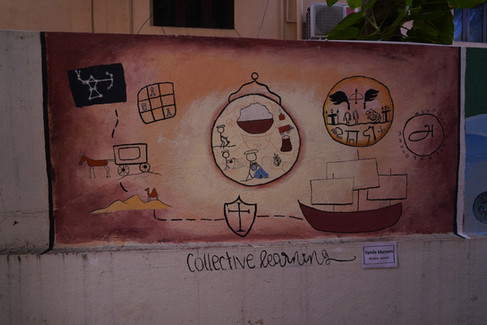 Our brushes grew broader and bolder as we experimented with wall art. Suddenly, the space was larger than the page, and our hands had to move with bigger, confident strokes. Mixing paints, creating shades, and scaling compositions onto walls felt liberating and we discovered how scale and space change the way art communicates. The students loved the teamwork; I loved watching art leap from paper to an expansive, public canvas.
