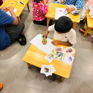 The little ones read Malli is Coming! by Jeeva Raghunath and talked about the joy of giving. They made simple paper gifts for someone they love. But many didn’t want to give them away—they had grown attached to what they made. One child softly said, “But grown-ups don’t really need our gifts.” That moment stayed with many of us. It opened up a bigger question—how can we show children that their love matters, even if it doesn’t come with a price tag?